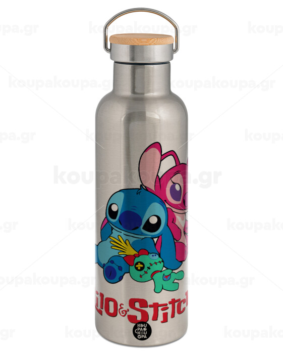 Lilo & Stitch, Stainless steel Silver with wooden lid (bamboo), double wall, 750ml