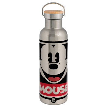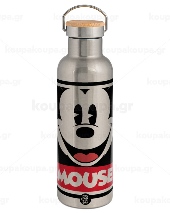 Mickey Mouse, Stainless steel Silver with wooden lid (bamboo), double wall, 750ml