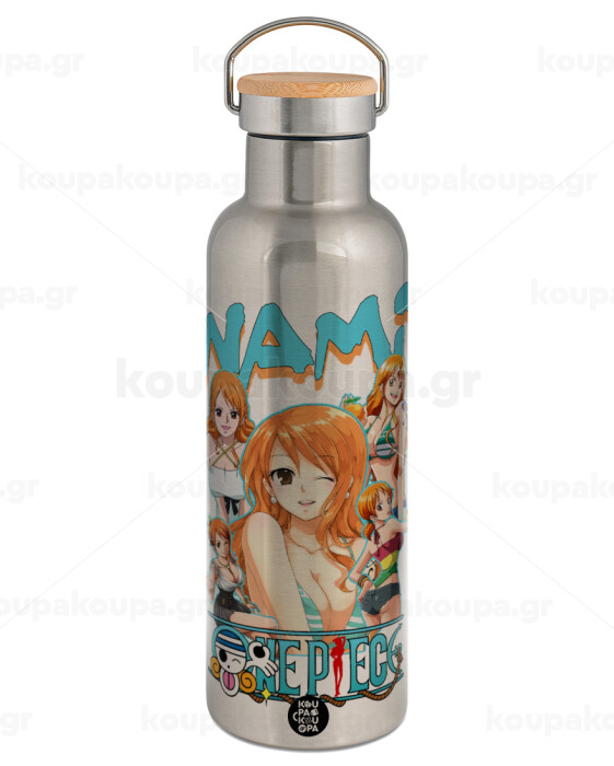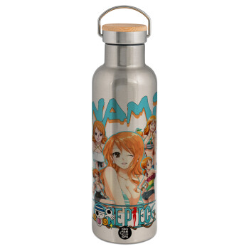 Nami One Piece, Stainless steel Silver with wooden lid (bamboo), double wall, 750ml