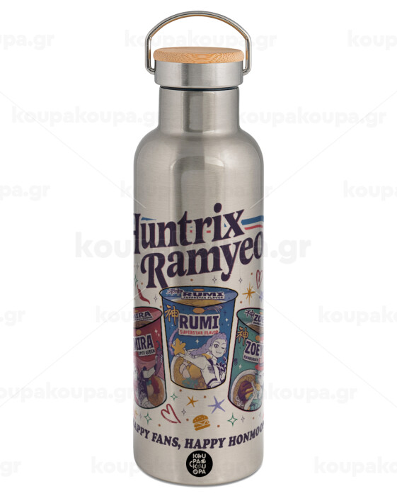 Ramyeon Huntrix, Stainless steel Silver with wooden lid (bamboo), double wall, 750ml