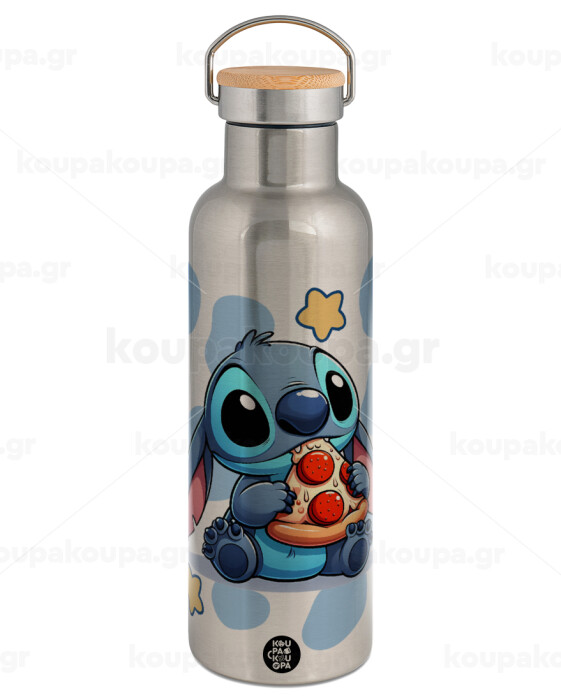 Stitch Pizza, Stainless steel Silver with wooden lid (bamboo), double wall, 750ml