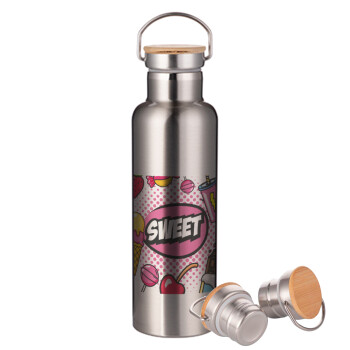 SWEET, Stainless steel Silver with wooden lid (bamboo), double wall, 750ml