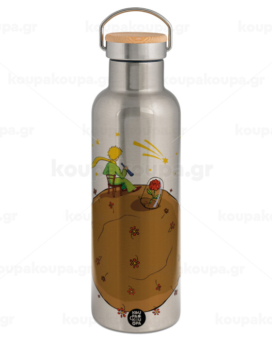 The Little prince planet, Stainless steel Silver with wooden lid (bamboo), double wall, 750ml