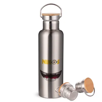 The minions, Stainless steel Silver with wooden lid (bamboo), double wall, 750ml