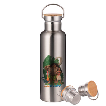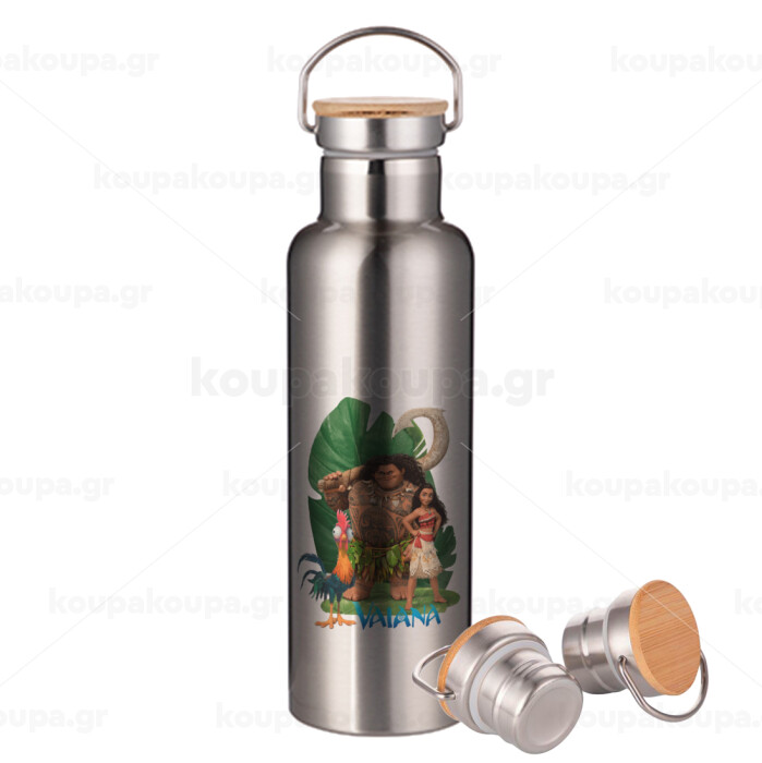 Vaiana, Stainless steel Silver with wooden lid (bamboo), double wall, 750ml