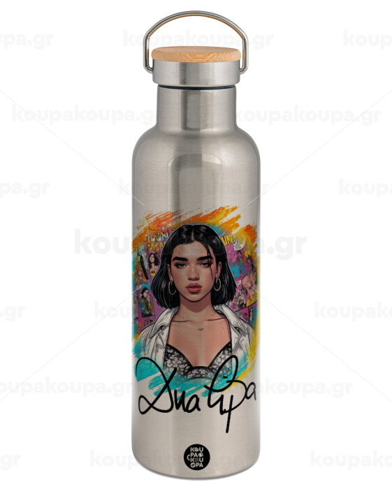 Dua lipa, Stainless steel Silver with wooden lid (bamboo), double wall, 750ml