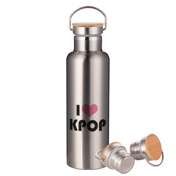 I Love KPOP, Stainless steel Silver with wooden lid (bamboo), double wall, 750ml