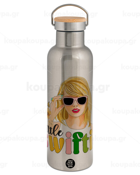 Little Swiftie, Stainless steel Silver with wooden lid (bamboo), double wall, 750ml