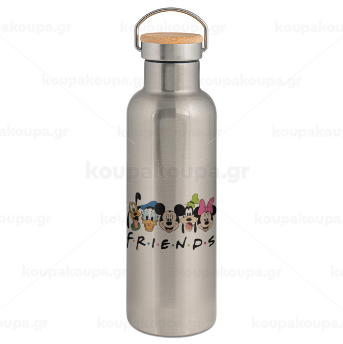 Friends characters, Stainless steel Silver with wooden lid (bamboo), double wall, 750ml