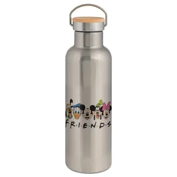 Friends characters, Stainless steel Silver with wooden lid (bamboo), double wall, 750ml