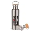 La casa de papel vertical, Stainless steel Silver with wooden lid (bamboo), double wall, 750ml