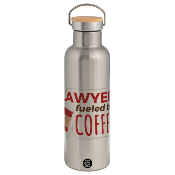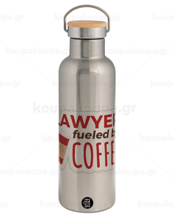 Lawyer fueled by coffee, Stainless steel Silver with wooden lid (bamboo), double wall, 750ml