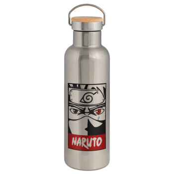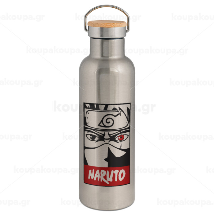 Naruto anime, Stainless steel Silver with wooden lid (bamboo), double wall, 750ml