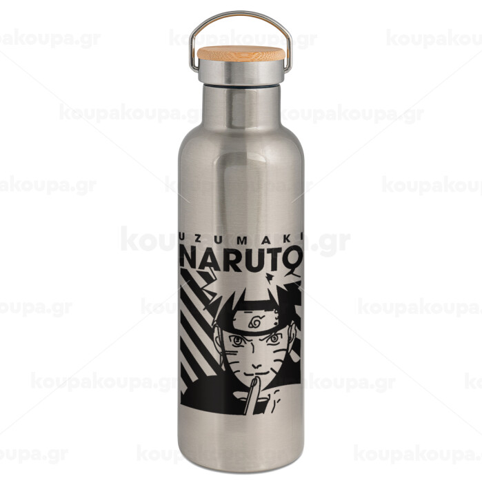 Naruto uzumaki, Stainless steel Silver with wooden lid (bamboo), double wall, 750ml