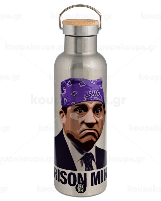 Prison Mike The office, Stainless steel Silver with wooden lid (bamboo), double wall, 750ml