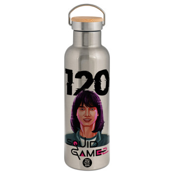 Squid game 120 Cho Hyun-ju, Stainless steel Silver with wooden lid (bamboo), double wall, 750ml