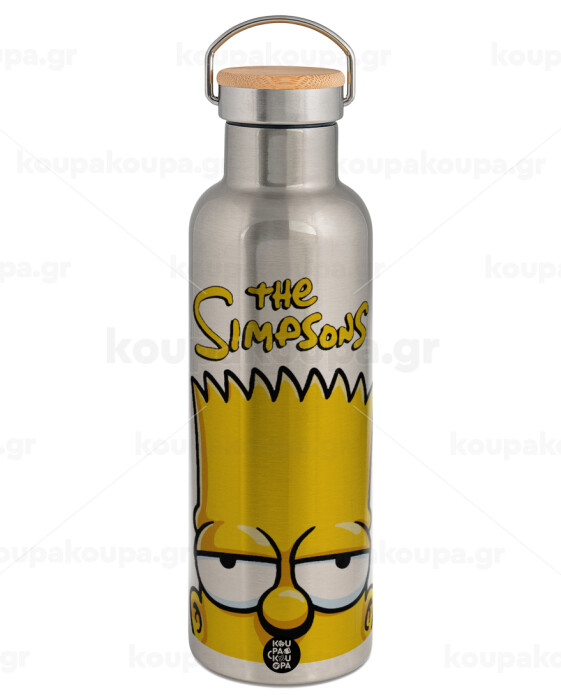 The Simpsons Bart, Stainless steel Silver with wooden lid (bamboo), double wall, 750ml