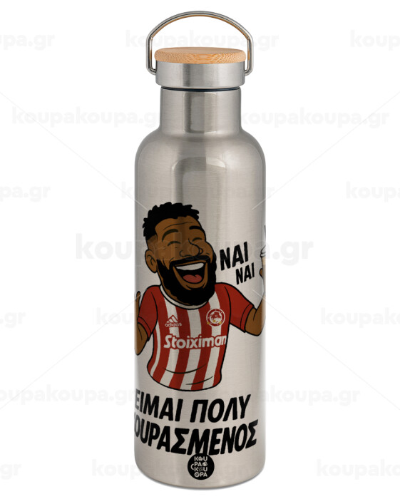 Ροντινέι, "ΠΟΛΥ ΚΟΥΡΑΣΜΕΝΟΣ", Stainless steel Silver with wooden lid (bamboo), double wall, 750ml