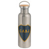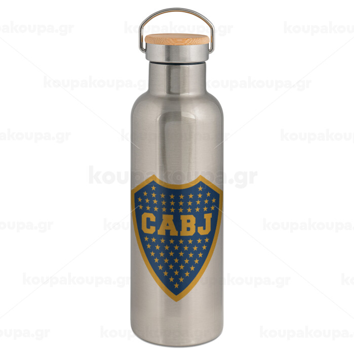 Club Atlético Boca Juniors, Stainless steel Silver with wooden lid (bamboo), double wall, 750ml