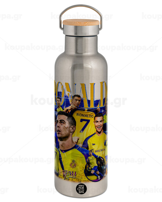 Cristiano Ronaldo Al Nassr, Stainless steel Silver with wooden lid (bamboo), double wall, 750ml