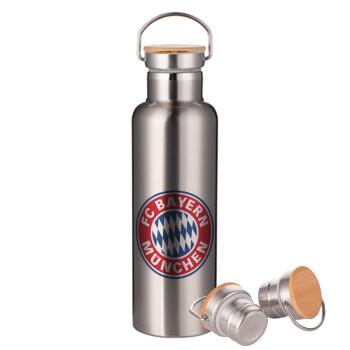 FC Bayern Munich, Stainless steel Silver with wooden lid (bamboo), double wall, 750ml