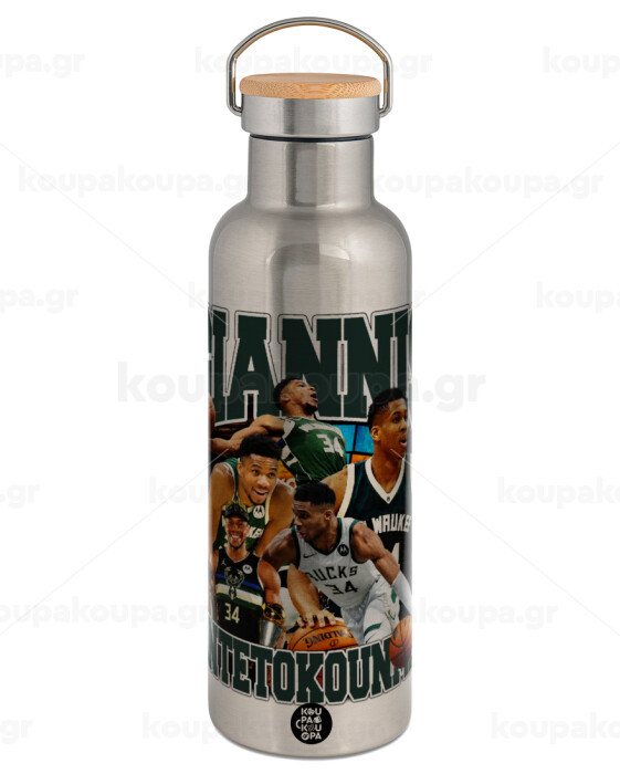 Giannis Antetokounmpo, Stainless steel Silver with wooden lid (bamboo), double wall, 750ml