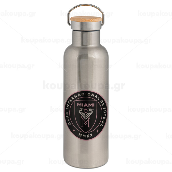 Inter Miami CF, Stainless steel Silver with wooden lid (bamboo), double wall, 750ml