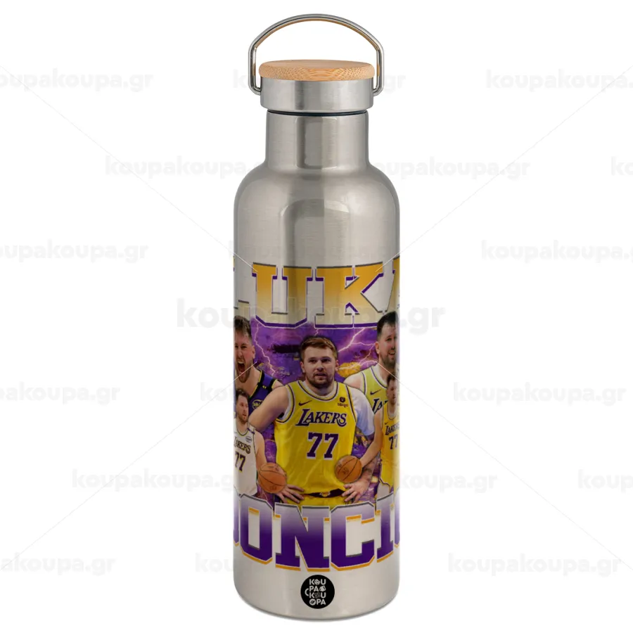 Luka Doncic Basketball , Stainless steel Silver with wooden lid (bamboo), double wall, 750ml