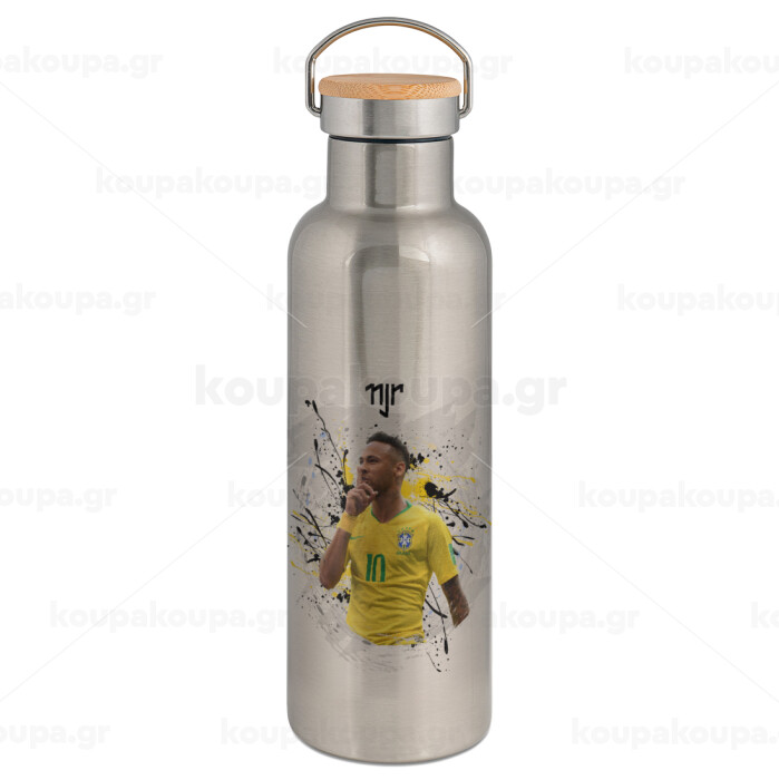 Neymar JR, Stainless steel Silver with wooden lid (bamboo), double wall, 750ml