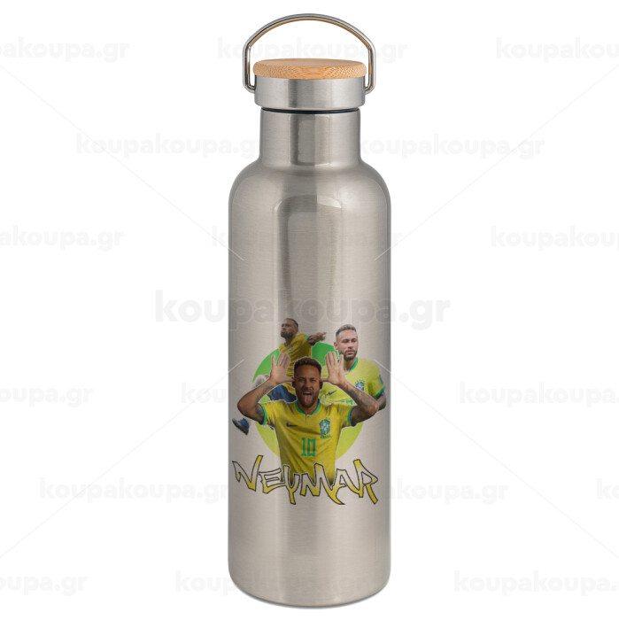 Neymar JR, Stainless steel Silver with wooden lid (bamboo), double wall, 750ml