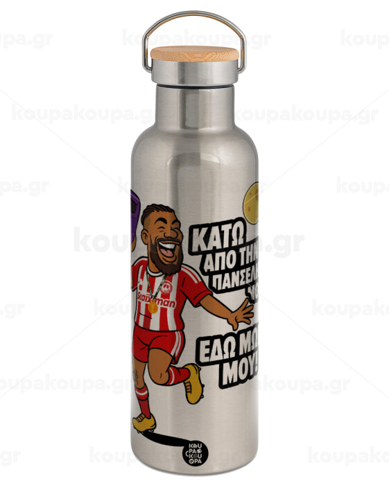Ροντινέι, "ΚΑΤΩ ΑΠΟ ΤΗΝ ΠΑΝΣΕΛΗΝΟ ΜΟΥ!", Stainless steel Silver with wooden lid (bamboo), double wall, 750ml