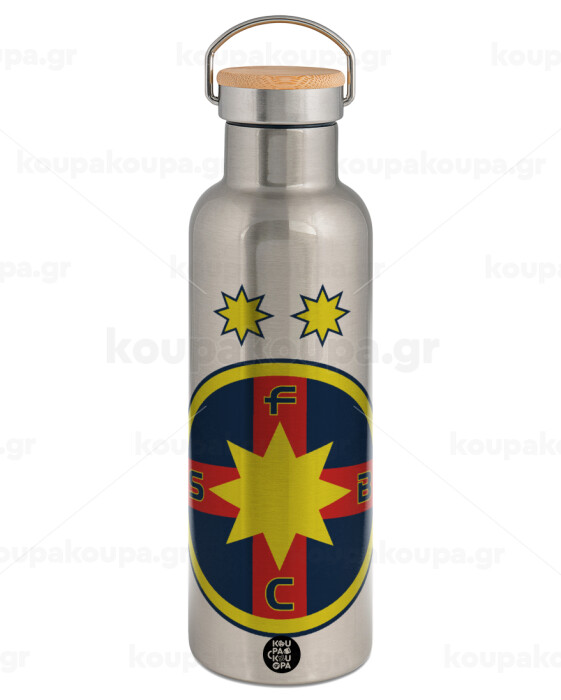 FC Steaua Bucuresti (FCSB), Stainless steel Silver with wooden lid (bamboo), double wall, 750ml