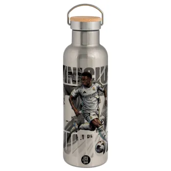 Vinícius Júnior (Βινίσιους Ζούνιορ), Stainless steel Silver with wooden lid (bamboo), double wall, 750ml