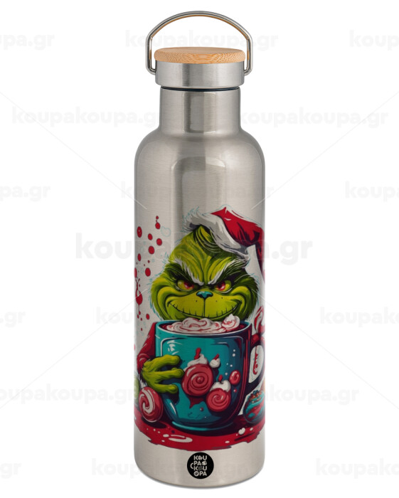 Giggling Grinchy Galore, Stainless steel Silver with wooden lid (bamboo), double wall, 750ml