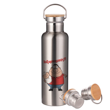 Χαζομπαμπάς, Stainless steel Silver with wooden lid (bamboo), double wall, 750ml