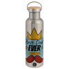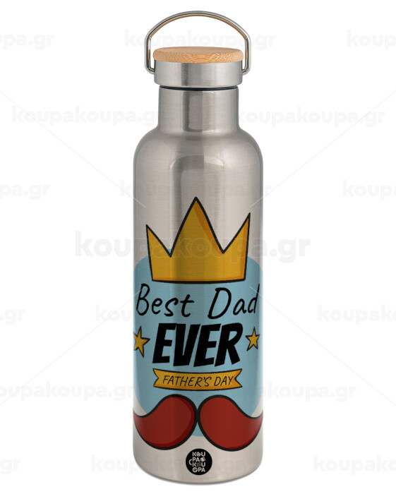 King, Best dad ever, Stainless steel Silver with wooden lid (bamboo), double wall, 750ml