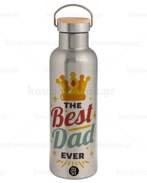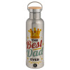 The Best DAD ever, Stainless steel Silver with wooden lid (bamboo), double wall, 750ml
