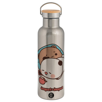 bubu + dudu, Stainless steel Silver with wooden lid (bamboo), double wall, 750ml