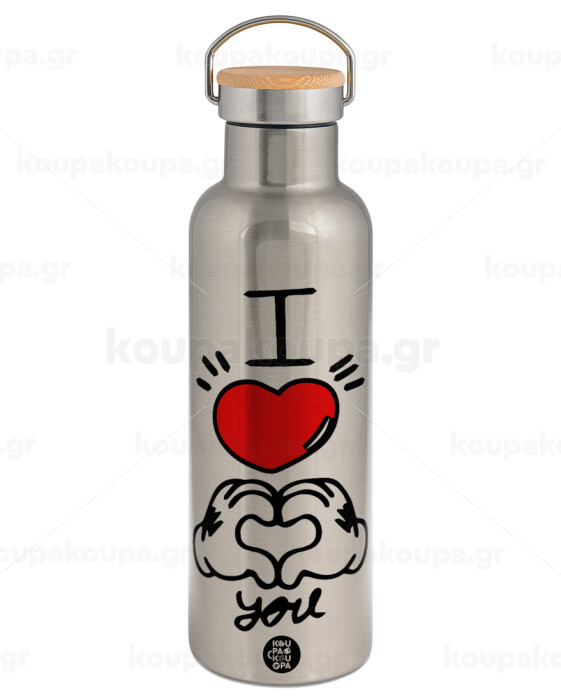 comics hands love, Stainless steel Silver with wooden lid (bamboo), double wall, 750ml