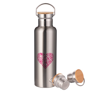 Heart hidden MSG, try me!!!, Stainless steel Silver with wooden lid (bamboo), double wall, 750ml