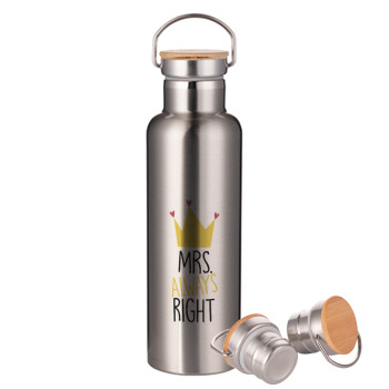 Mrs "Always" right, Stainless steel Silver with wooden lid (bamboo), double wall, 750ml