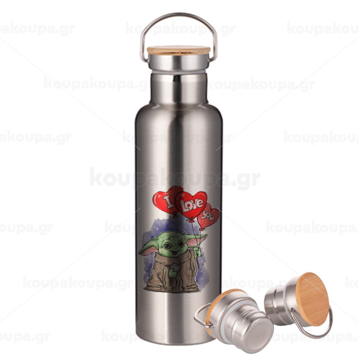 Yoda, i love you, Stainless steel Silver with wooden lid (bamboo), double wall, 750ml