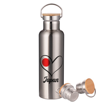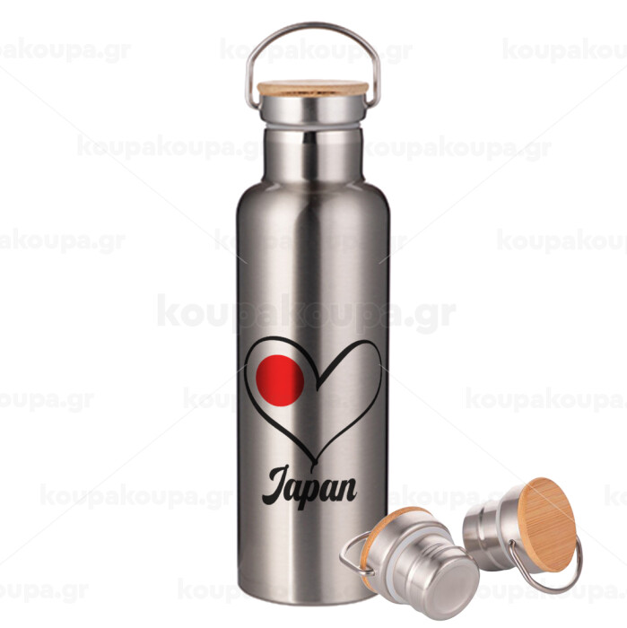 Japan flag, Stainless steel Silver with wooden lid (bamboo), double wall, 750ml