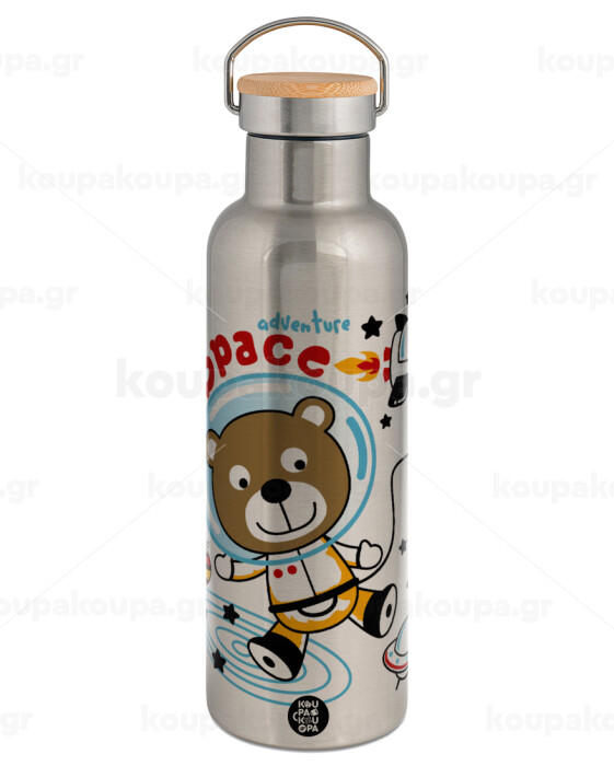 Kids Space, Stainless steel Silver with wooden lid (bamboo), double wall, 750ml