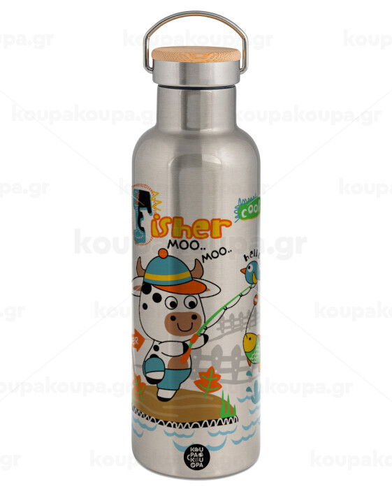 Kids Fisherman, Stainless steel Silver with wooden lid (bamboo), double wall, 750ml