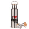I Love boobs ...just like my daddy, Stainless steel Silver with wooden lid (bamboo), double wall, 750ml
