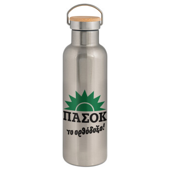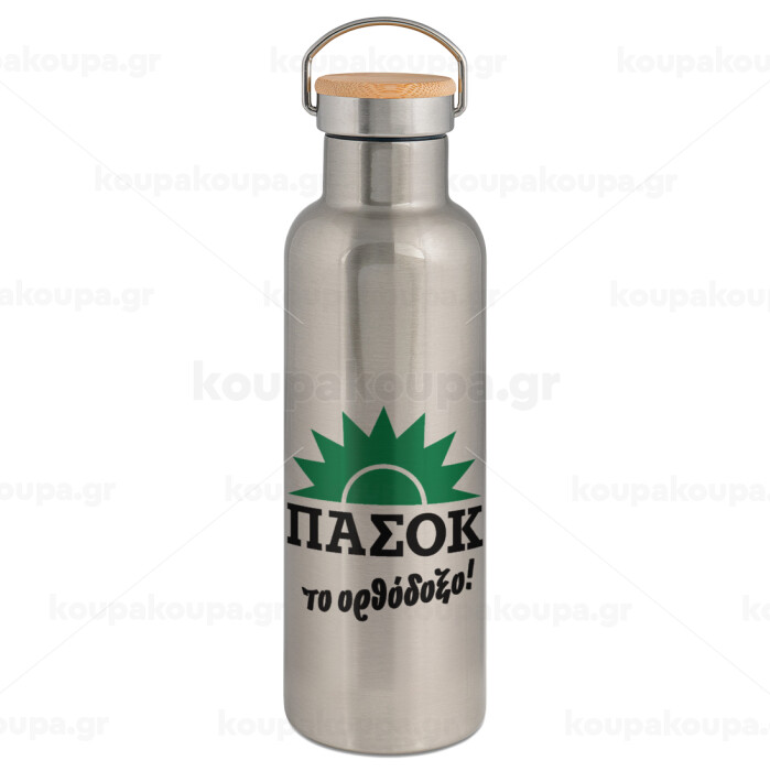 PASOK the orthodoxo, Stainless steel Silver with wooden lid (bamboo), double wall, 750ml