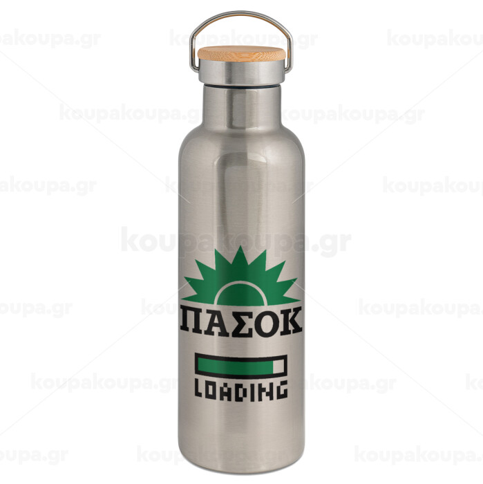 PASOK Loading, Stainless steel Silver with wooden lid (bamboo), double wall, 750ml