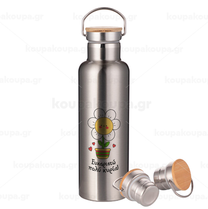 Ευχαριστώ πολύ κυρία!!!, Stainless steel Silver with wooden lid (bamboo), double wall, 750ml