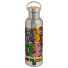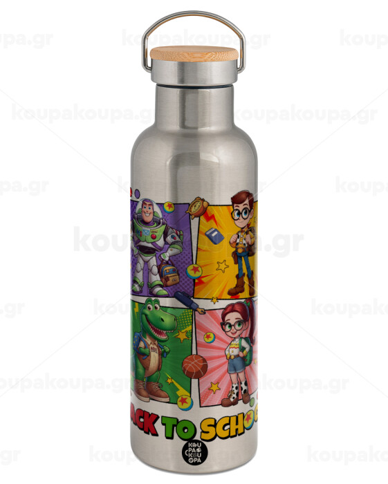 Back to the School Buzz & Friends, Stainless steel Silver with wooden lid (bamboo), double wall, 750ml